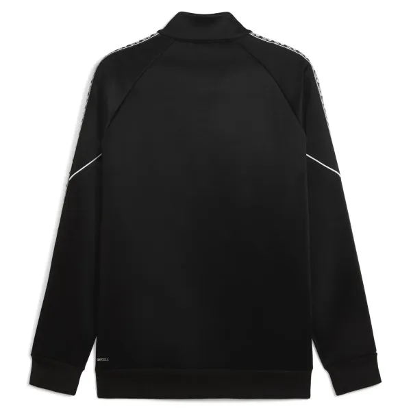 Ein stylisches schwarzes Sweatshirt aus der PUMA FCSD Prematch-Kollektion mit Streifen an den Rändern und Ärmeln, die für Ausdruckskraft und Wiedererkennung sorgen. Es wurde speziell für die Spieler von Shakhtar entworfen, die dieses Modell zum Aufwärmen vor dem Spiel in der Champions League und UPL tragen.