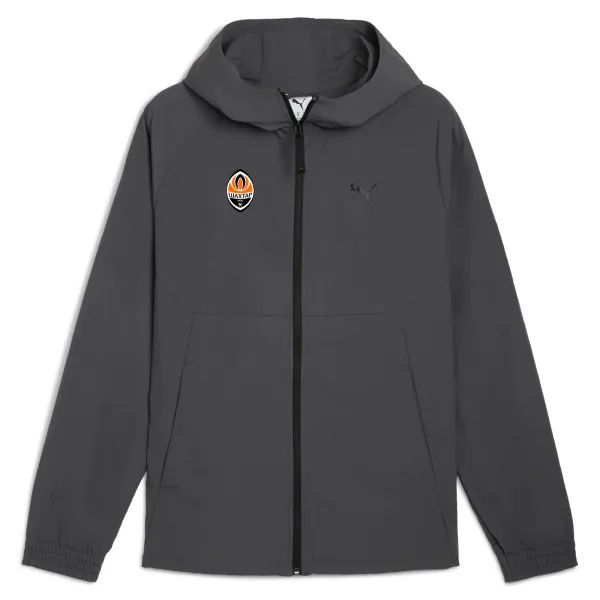 A football jacket from the PUMATECH collection and the official Shakhtar collection featuring the club crest. Players wear this item while travelling and representing the team. It is made from a soft and hardwearing blend, combining the features of professional sportswear and casual style.