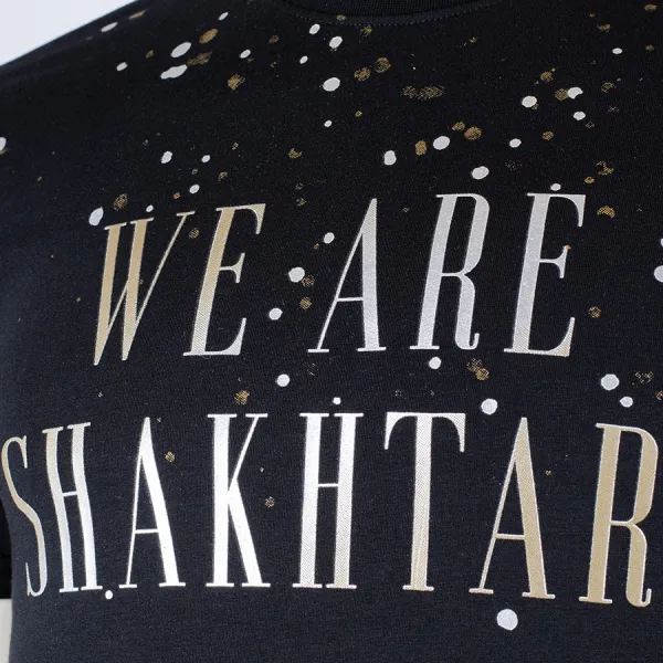Women's black T-shirt is decorated with the We Are Shakhtar lettering. The design is just perfect for everyday wear.
