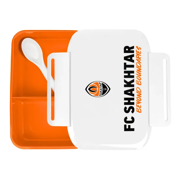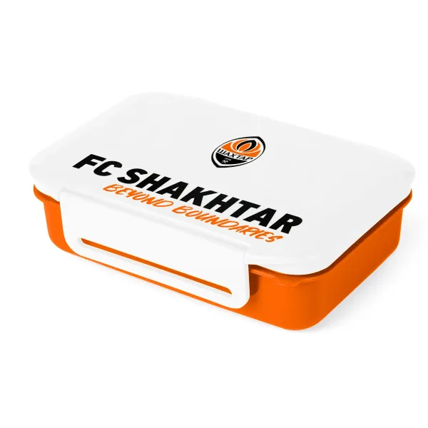 FC Shakhtar children’s lunch box is a stylish and practical solution for young fans of the Miners! The orange case with a white lid is decorated with the club logo and the FC Shakhtar Beyond Boundaries lettering, inspiring you to reach new heights and showing devotion to your favourite team. The lunch box features two compartments for convenient food storage and comes with a spoon included.