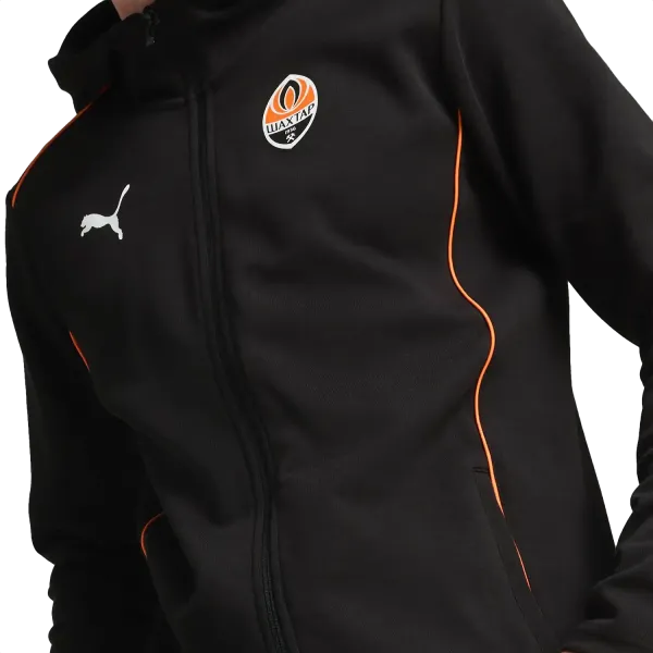 The classic sweat jacket with the club logo and hood will never be out of fashion! A model from the official casual wear collection in orange and black colours is the choice of FC Shakhtar staff.