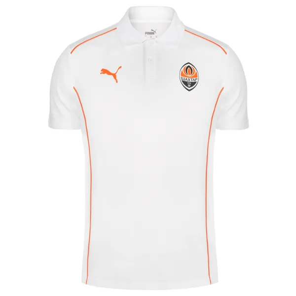 A classic polo shirt with a collar will never be out of fashion! A model from the official casual wear collection in white and orange colours is the choice of FC Shakhtar players.