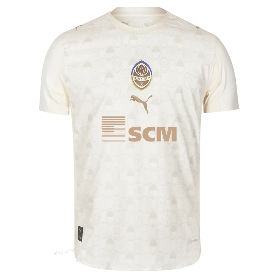 Introducing the 2025/26 FC Shakhtar third kit jersey by PUMA – the harmonious blend of sophisticated design and advanced technology. The light cream colour adds elegance, while the pattern across the jersey, inspired by the Miners’ crest, emphasises its uniqueness and the club's identity.