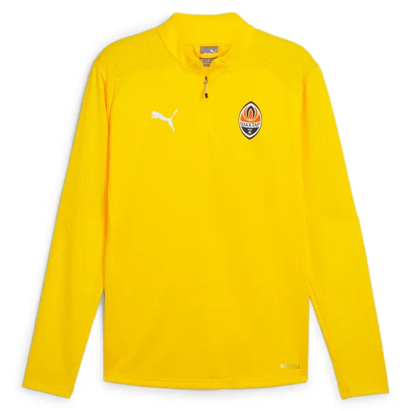 Bright yellow 2024/25 Puma FCSD Training 1/4 Zip Top Pro is the perfect choice for the fans of the Miners. Model with long sleeves and zipper (1/4 zip). The breathable fabric will provide maximum comfort during training sessions. The unique pattern design emphasizes team’s style and agility. The choice of the coaching staff of FC Shakhtar.