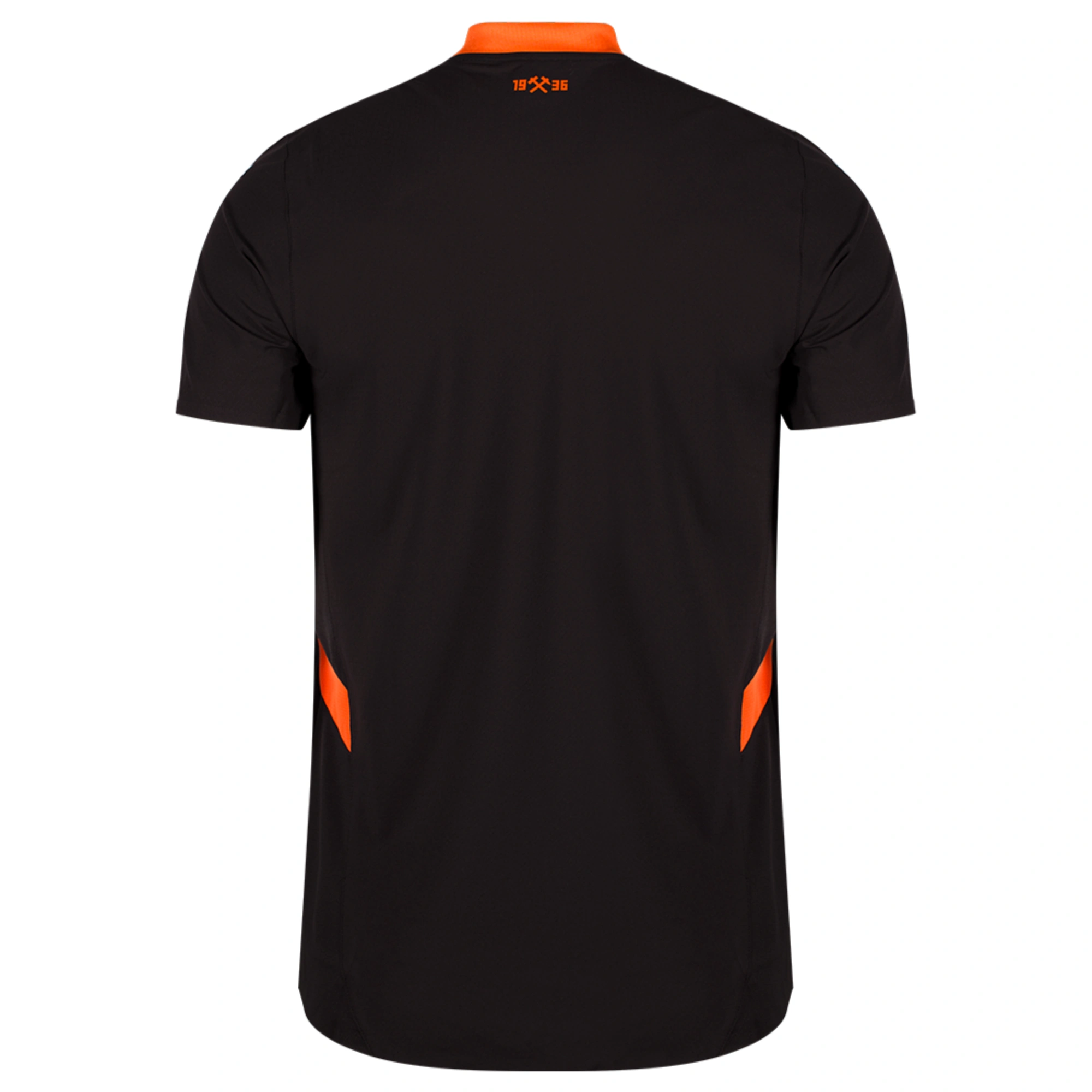 Чорна ігрова футболка з оранжевими вставками – виїзне екіпірування «гірників» сезону-2024/25. Кольорове рішення відображає елегантність і вишуканість. Оранжеві деталі не лише додають яскравості, а й символізують вогонь і пристрасть, що палають у серцях гравців та вболівальників. Чорний фон з оранжевими акцентами створює стильний і водночас агресивний образ, який надихає футболістів «Шахтаря» на перемоги. Технологія ULTRAWEAVE забезпечує максимальний комфорт гравців.