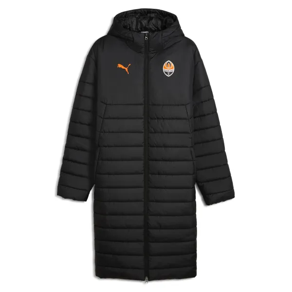 Довга зимова куртка не лише зігріє в холодні дні, а й продемонструє відданість улюбленому клубові. Міцний і водонепроникний матеріал захистить від вітру та снігу. Куртка має зручний каптур, високий комір, блискавку й дві бічні кишені. Модель з мінімалістичним дизайном є частиною офіційної колекції ФК «Шахтар» сезону-2025/26, пасуватиме чоловікам і жінкам.