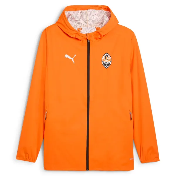 Погода не завадить вашій улюбленій команді вийти на поле, і не має зупиняти вас. Дощовик з офіційної колекції, який одягають тренерський штаб ФК «Шахтар» під час тренувань, виконано з використанням технології rainCELL та водовідштовхувальної обробки, а також він має капюшон, приклеєне облицювання й занижений нижній край для максимального захисту від сирості.