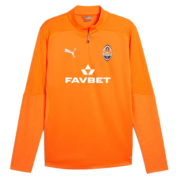 Яскрава оранжева тренувальна кофта Puma FCSD Training 1/4 Zip Top Pro FAVBET сезону-2024/25 – ідеальний вибір для вболівальників «гірників». Модель із довгим рукавом і блискавкою (1/4 zip). Дихаюча тканина забезпечуватиме максимальний комфорт під час тренувань. Унікальний дизайн малюнка підкреслює стиль і динамічність команди. Саме в таких кофтах тренуються гравці «Шахтаря».