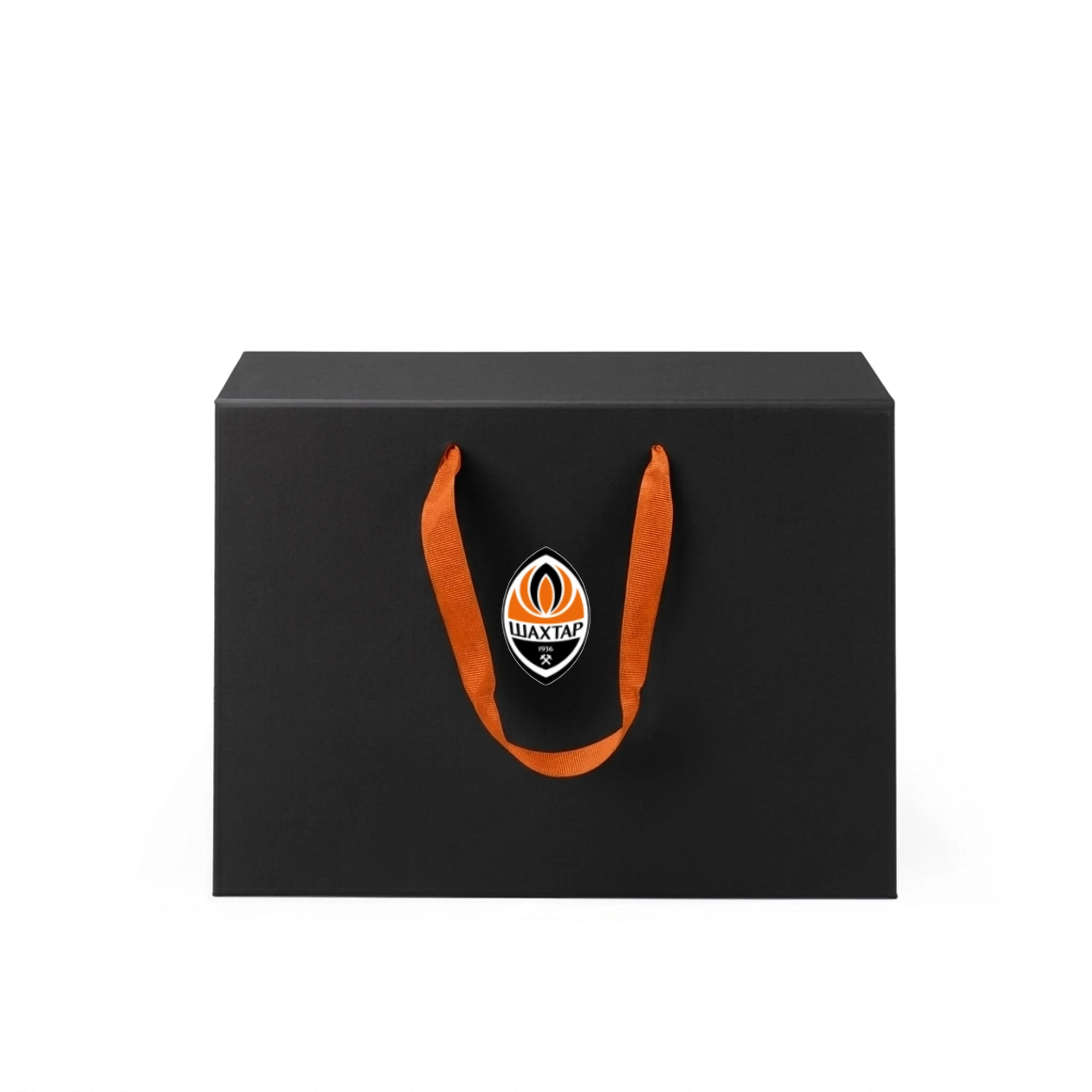Чорна подарункова коробка ФК «Шахтар» з ручками – ідеальний вибір для справжнього фаната!