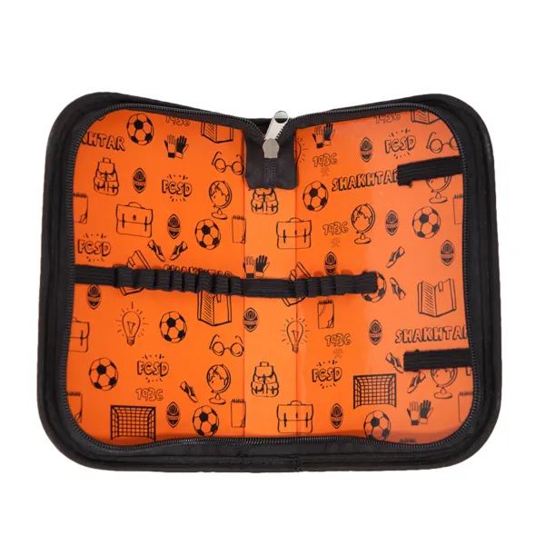 Учнівський пенал для юних фанатів «Шахтаря» має щільний корпус і необхідний набір кріплень для канцелярії. Декорований великим логотипом команди на лицьовій частині, усередині – двоколірний дизайн, який за бажання можна доповнити самому.