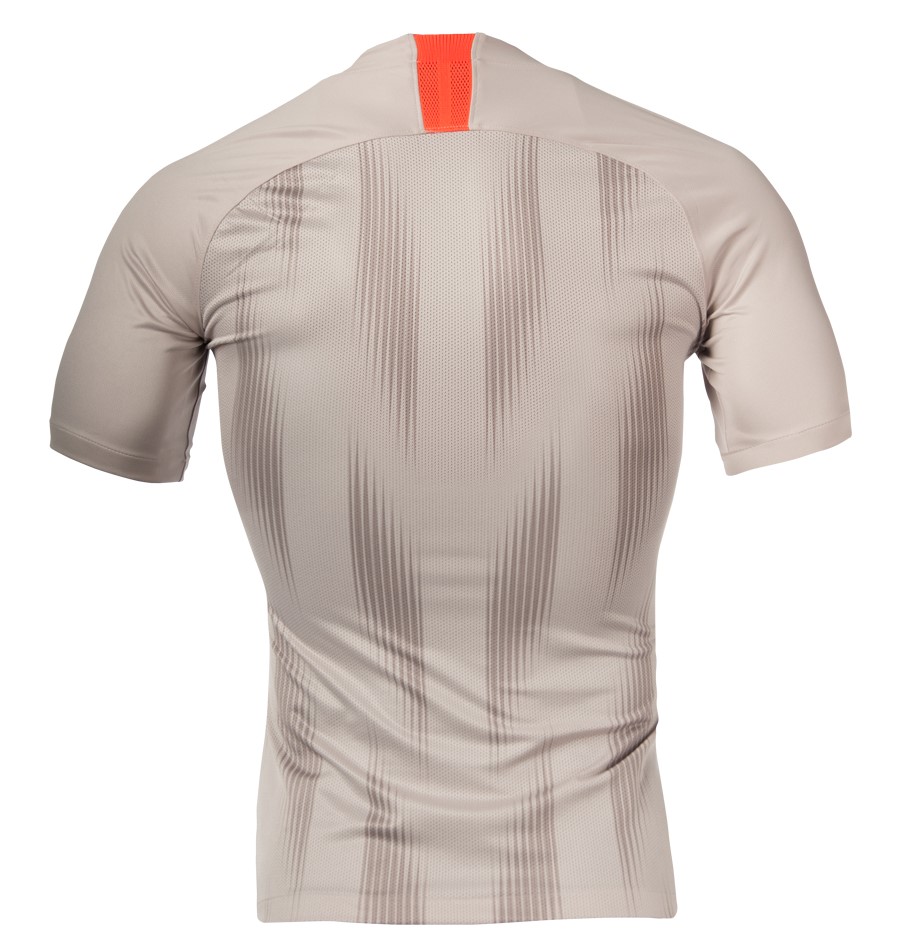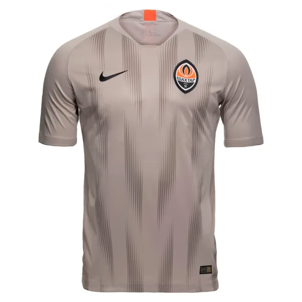 The away shirt from the 2018/19 FC Shakhtar kit. The kit has a distinctly different colour with a special meaning for the Miners ? the grey-beige stripes representing dust deep down coal mines.