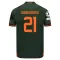 A classic design combines sharp shapes with a gradient blur effect in a chequered pattern across the entire surface. The dark green Puma FCSD away jersey has orange inserts on the sleeves.