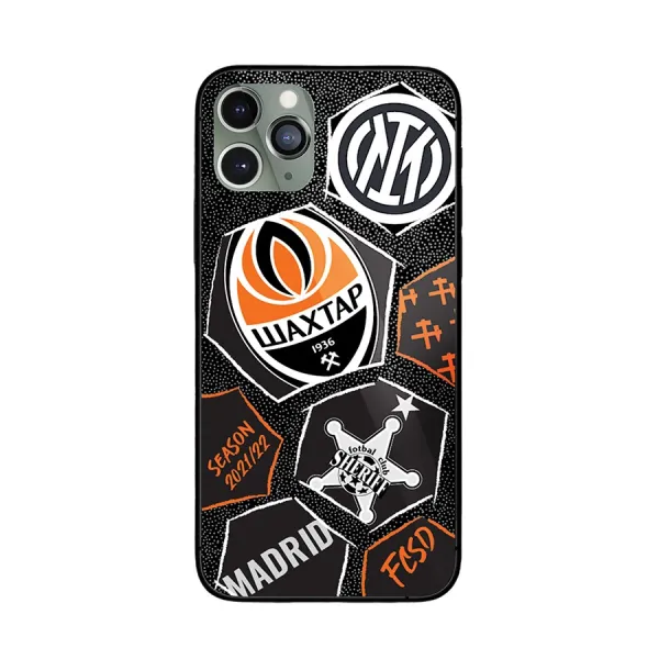 The silicone iPhone case with Champions League Group D Cup 2021/22. The case sides are made of black silicone, the back surface imitates glass.