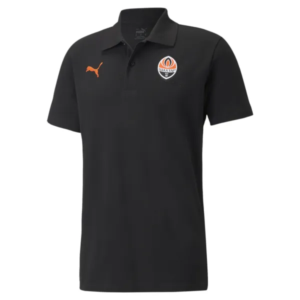 A classic polo shirt with a collar will never be out of fashion! A model from the official casual wear collection in orange and black colours is the choice of FC Shakhtar staff.