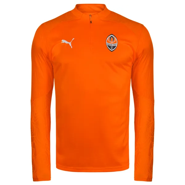 Bright orange 2024/25 Puma FCSD Training 1/4 Zip Top Pro is the perfect choice for the fans of the Miners. Model with long sleeves and zipper (1/4 zip). The breathable fabric will provide maximum comfort during training sessions. The unique pattern design emphasizes team’s style and agility. Shakhtar players train wearing these jackets.