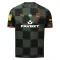 A classic design combines sharp shapes with a gradient blur effect in a chequered pattern across the entire surface. The dark green Puma FCSD away jersey has orange inserts on the sleeves.