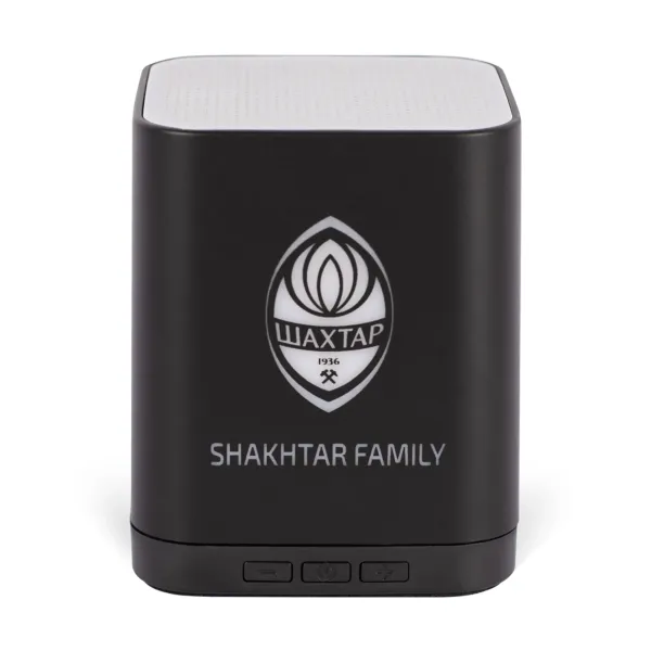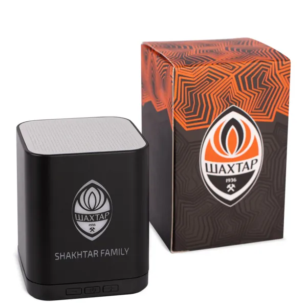 A stylish portable speaker with a bright FC Shakhtar logo has a built-in battery and will allow you to enjoy your favourite music anywhere. Made of durable materials, this compact model with Shakhtar Family lettering will make a great addition to any true fan's collection.