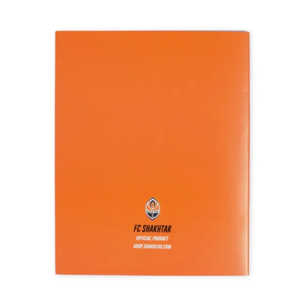It is made of thick high-quality paper with Shakhtar's bright Logo on the cover, it also features the club symbol of crossed hammers. The notebook was ruled using the club's orange colour range that makes it unique. It has 18 sheets.