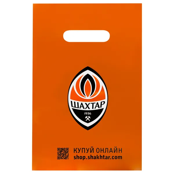 Пакет ФК «Шахтер» оранжевого цвета с фирменным логотипом клуба. Поможет собрать все ваши покупки или же станет отличным дополнением к подарку фанату FC «Shakhtar».