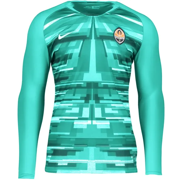 Оригінальний воротарський светр Nike ФК «Шахтар» з комплекту форми 2019/20. Зелена кольорова палітра светри прикрашена динамічним орнаментом. Воротарська футболка виконана з переробленого синтетичного матеріалу, який володіє технологією Nike Dri-Fit. Технологія Dri-Fit забезпечує ефективну вентиляцію і дарує максимальний комфорт. Модель має приталений крій, що надає зручну посадку і не сковує рухи воротаря.