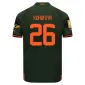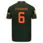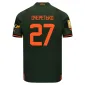 Класичний дизайн поєднує гострі форми з ефектом градієнтного розмиття в картатому візерунку по всій поверхні. Темно-зелена футболка Puma FCSD Away має оранжеві вставки на рукавах.