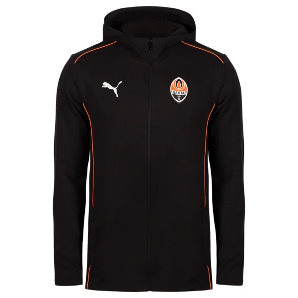 Класична олімпійка з логотипом клубу й каптуром ніколи не вийде з моди! Модель з офіційної колекції повсякденного одягу FCSD Casual в оранжево-чорних кольорах – вибір персоналу та тренерів ФК «Шахтар».