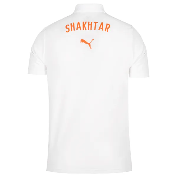 Класичне поло з коміром ніколи не вийде з моди! Модель з офіційної колекції повсякденного одягу Puma FCSD Casual в біло-оранжевих кольорах – вибір гравців ФК «Шахтар».
