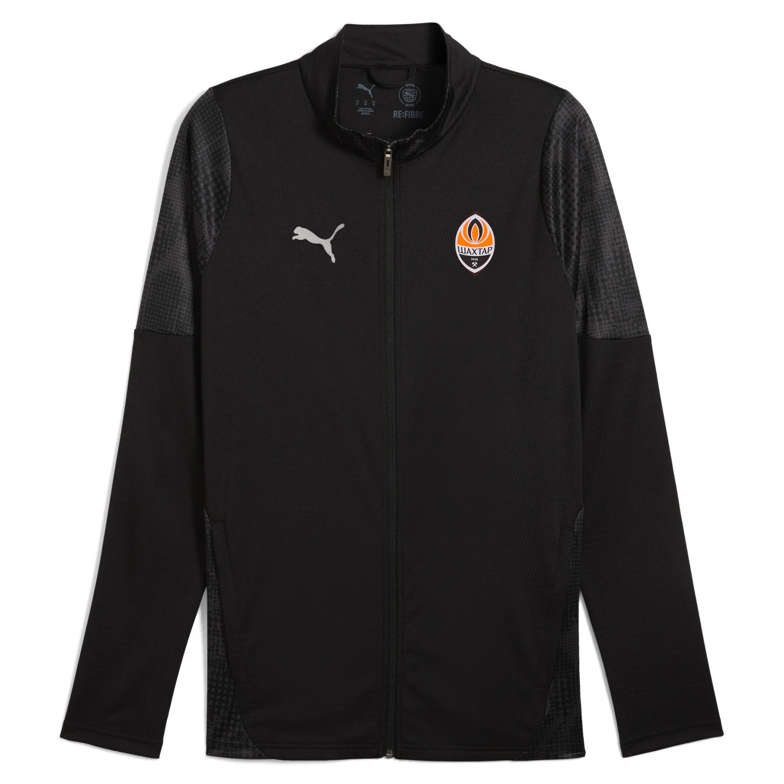 Високотехнологічна олімпійка PUMA FCSD Travel сезону-2025/26 із застібкою-блискавкою є частиною офіційного екіпірування ФК «Шахтар». Відрізняється стильним вузьким кроєм, динамічними графічними вставками, що додають їй сучасного вигляду. Унікальний дизайн малюнка підкреслює стиль і динамічність команди.