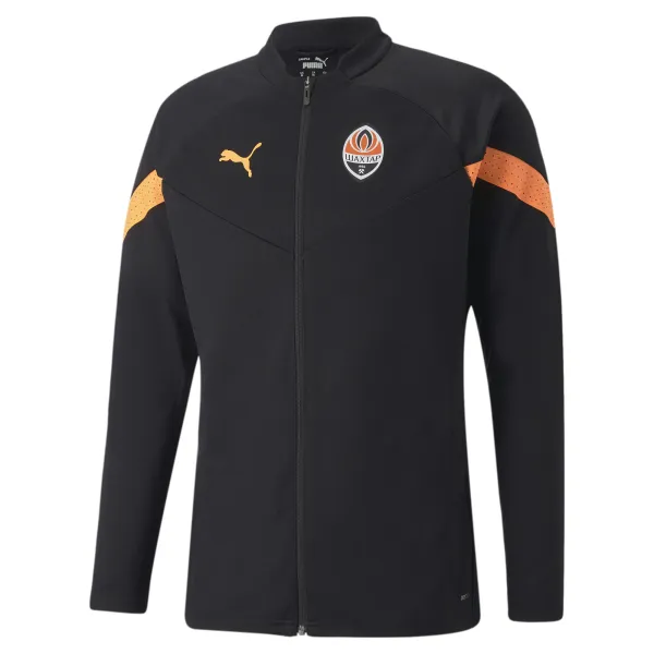 Високотехнологічна тренувальна куртка із застібкою-блискавкою є частиною офіційного екіпірування ФК «Шахтар» сезону-2023/24. Відрізняється стильним вузьким кроєм, динамічними графічними вставками й деталями з кольоровими блоками, що додають їй сучасного вигляду. Виготовлено з фірмового матеріалу dryCELL від Puma та 100% перероблених волокон. Ця куртка, що входить до нашої колекції teamCUP, поєднує в собі функціональність і стиль – тепер вас ніщо не зупинить!