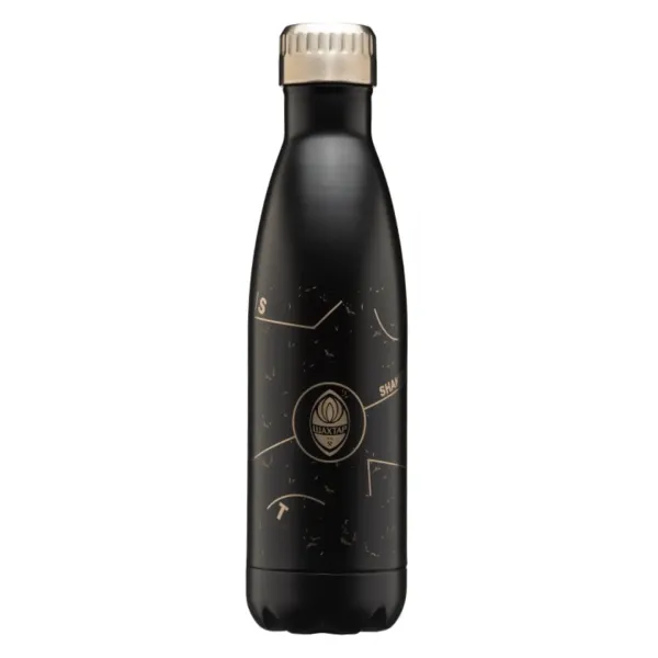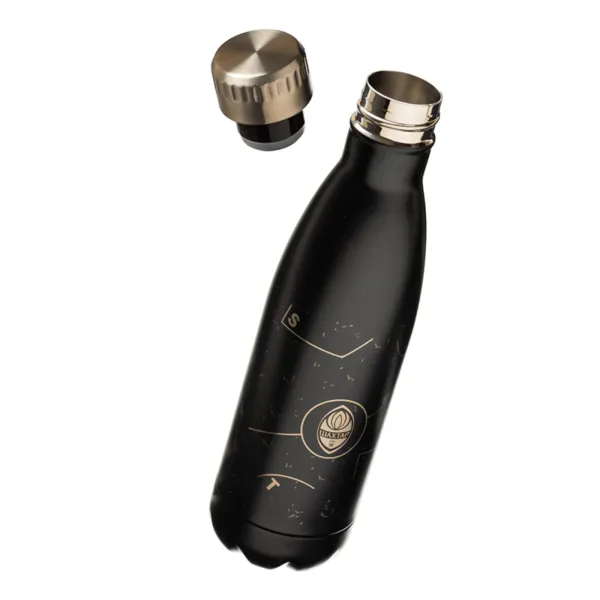 Термопляшку чорного кольору з лазерним гравіюванням і клубною символікою виготовлено з якісної нержавіючої сталі. Має високу міцність і стійка до падінь або перепадів температури. Двошаровий вакуумний корпус добре зберігає температуру рідини до 8 годин, а герметична пробка з різьбленням захищає від протікання.